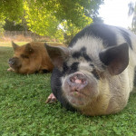 Unsere (ge-)wichtigsten Mitbewohner sind Frido und Guido, zwei Kune Kune Schweine. Die herzlichen Schmuser freuen sich über jeden, der sich zum ihm ins Gehege traut oder was Essbares rüberwirft.